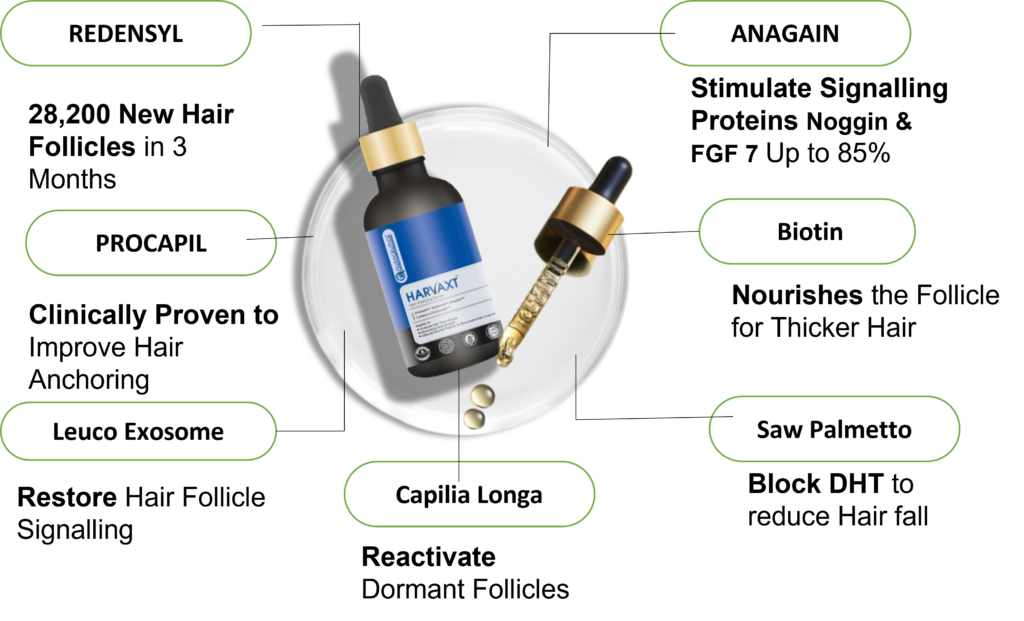 Stimulates signal molecules to reactivate hair growth